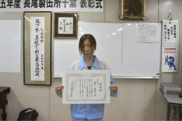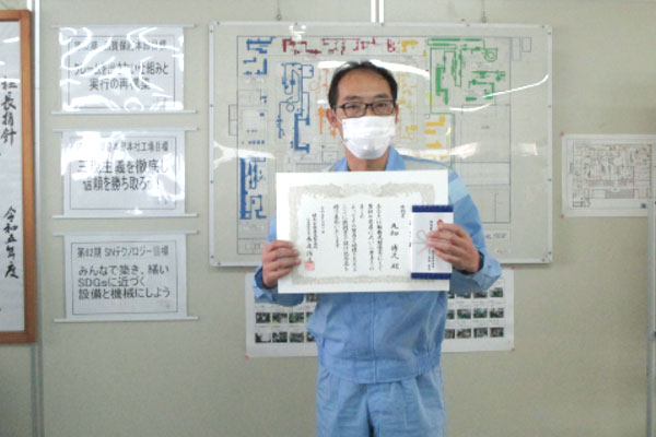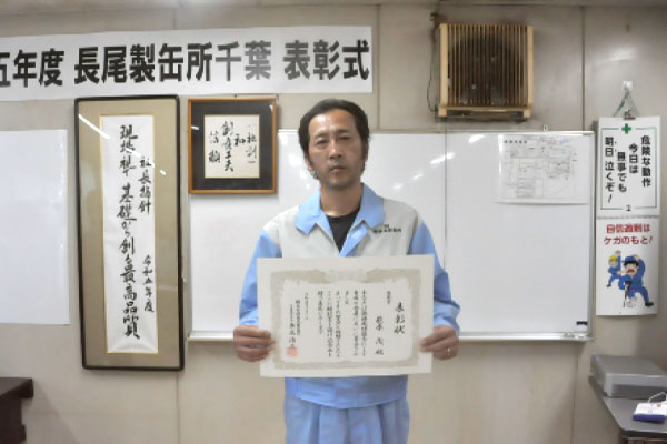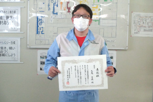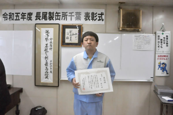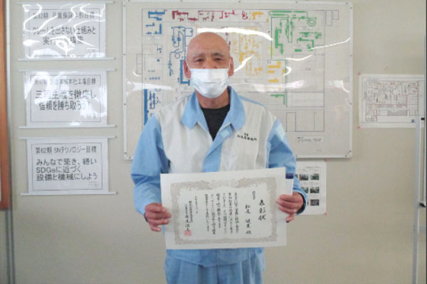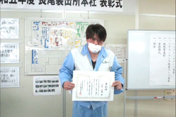 表彰は、優良従業員表彰、提案表彰、5Sコンペ(第10弾)表彰、ノークレームコンペ(第10弾)表彰、パフォーマンス改善コンペ(第7弾)表彰、永年勤続表彰、特別賞表彰の7部門にて、個人では延べ16名、団体では延べ9組(102名)が表彰されました。