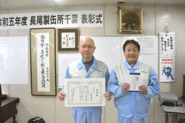 〇パフォーマンス改善コンペ 第7弾 優良工場賞 長尾 聰 本部長補佐、藤田 智志 工場長