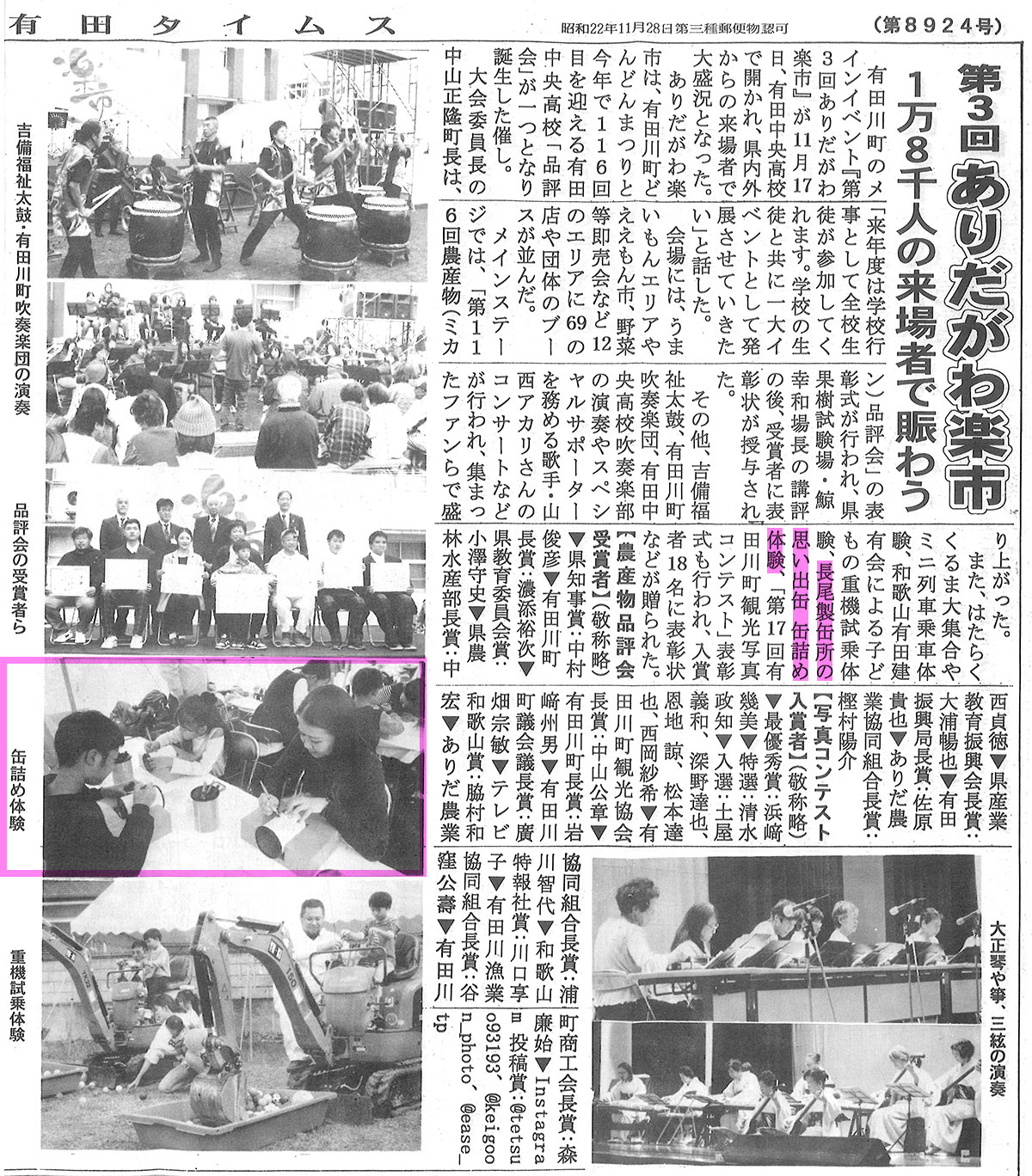 また、その様子は地元紙「和歌山特報」「有田タイムス」においても紹介されました。